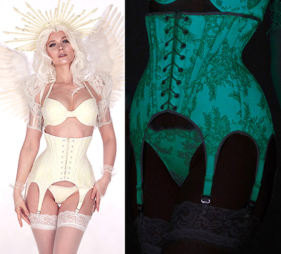 Thinking about buying our Glow in the Dark trimmed PVC Clothing? We'll send you piece of the glow in the dark fabric we use for our collars and lace corsets on our next shipping day for a dollar. This glow in the dark trim is completely hand washable, non-toxic, and durable. You can add this to another order to save shipping costs or purchase it on it own for the cost of our lightest shipping to your country using a variety of methods available at checkout.