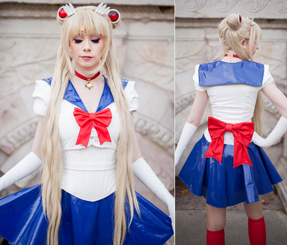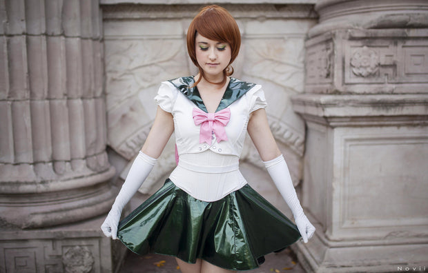 Shown with our new PVC skater skirt, elbow length PVC gloves, a PVC underbust and a Giant PVC Waist bow. You can complete this outfit by either purchasing those items separately or through this page below, or make your own unique Sailor Moon costume using our other PVC items or your own clothing!